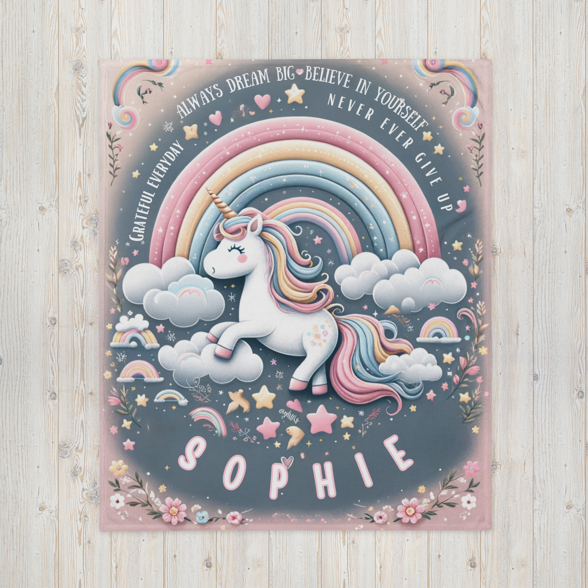 Custom Name Fantasy Unicorn Fleece Blanket - Hypoallergenic & Cozy - Throw Blanket for Girls