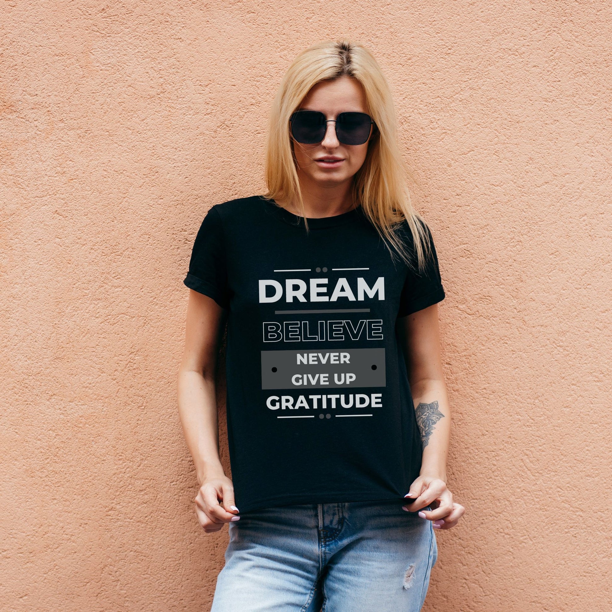 Dream Believe Never Give Up & Gratitude Tees - DBNG Lifestyle - Black Unisex T-shirt - Positivity - Inspiring Motivation - Keys of Success