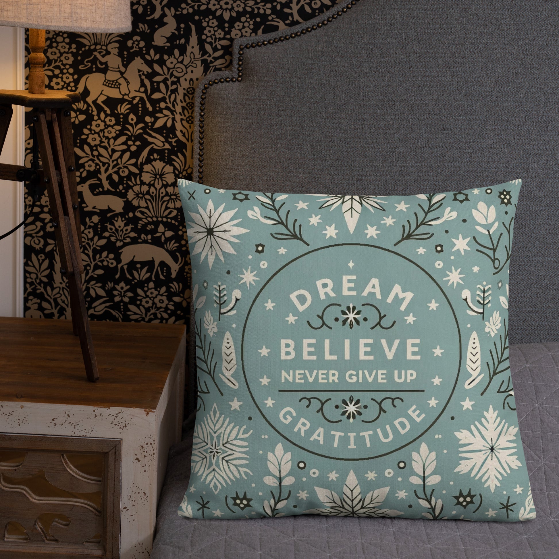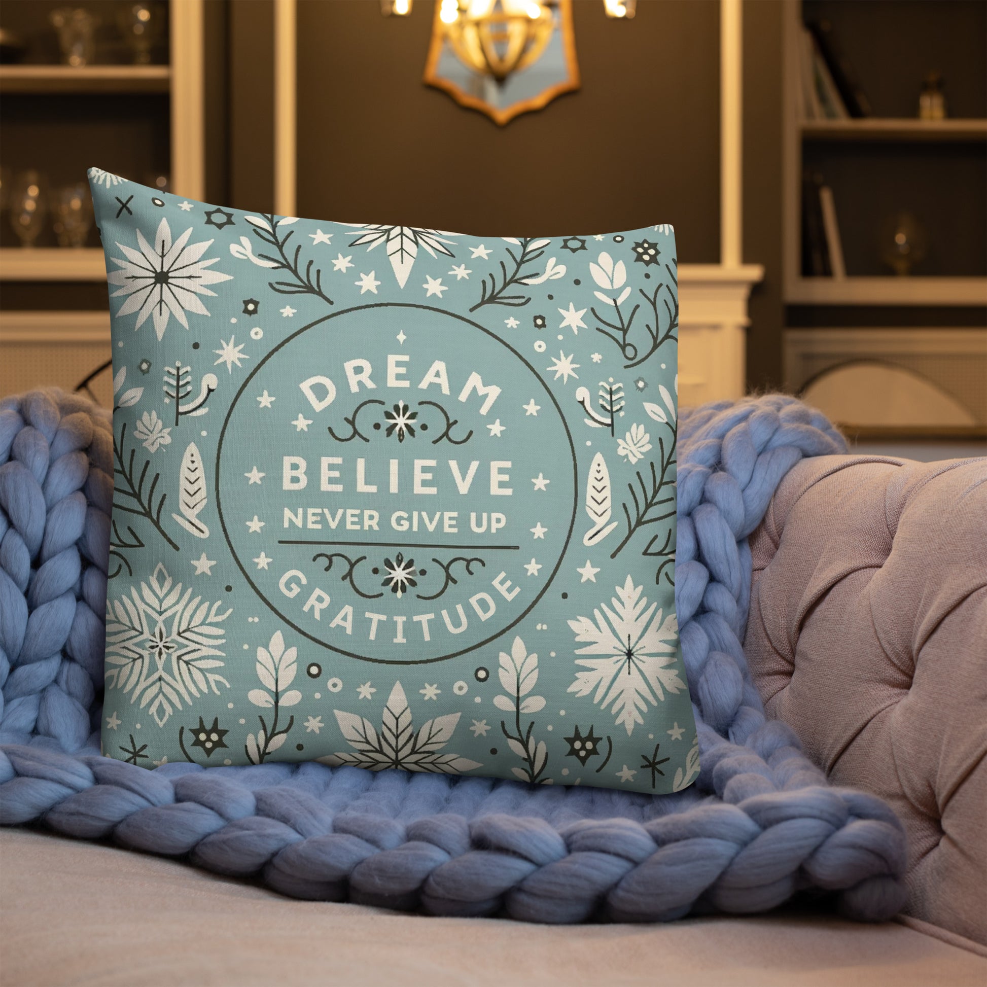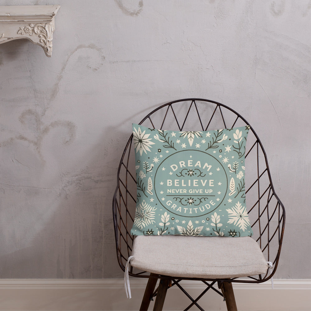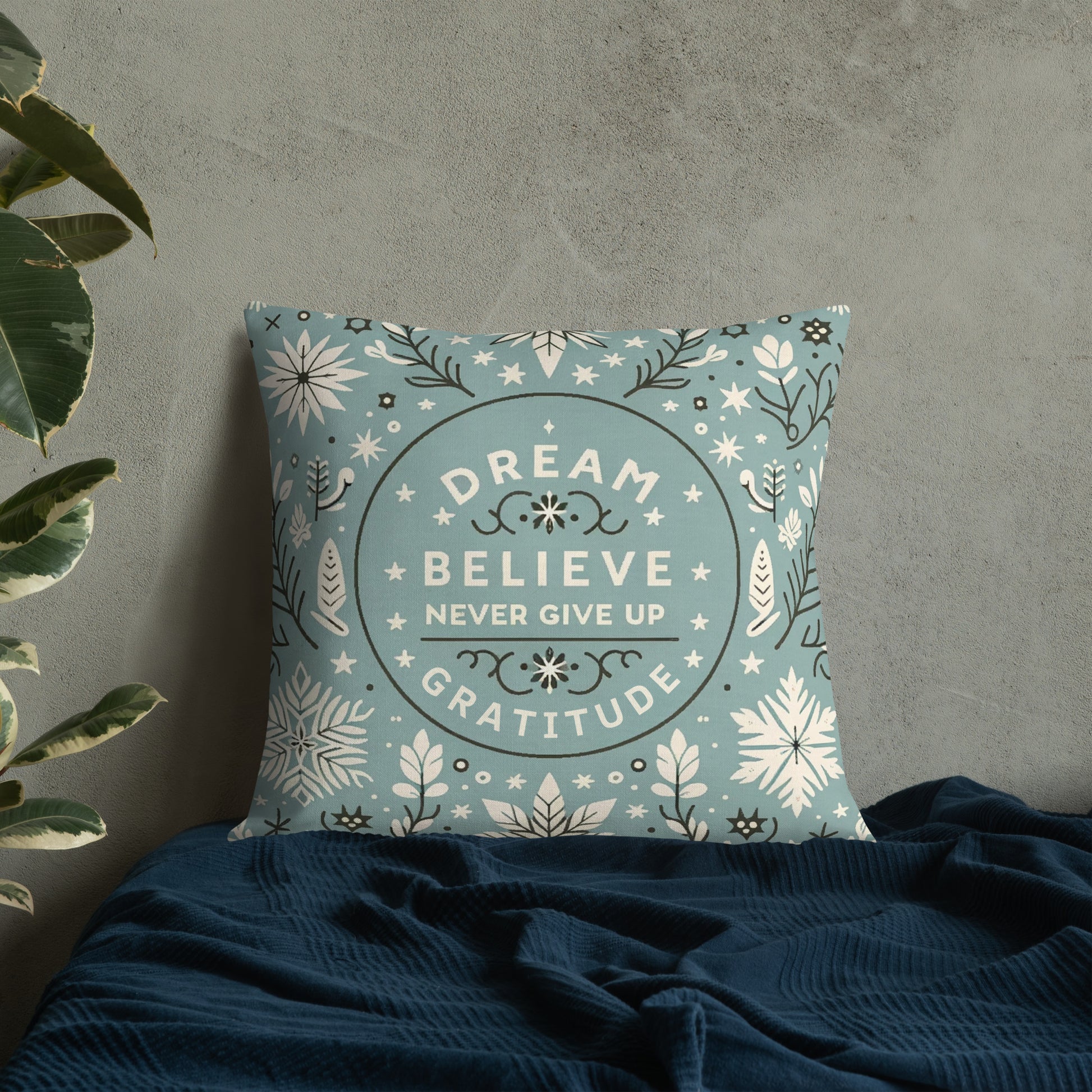 Add a touch of inspiration to your home with our Motivational Quote Pillow Case. This elegant design features the uplifting mantra "Dream" and "Gratitude," making it a perfect home accessory or a thoughtful holiday gift.